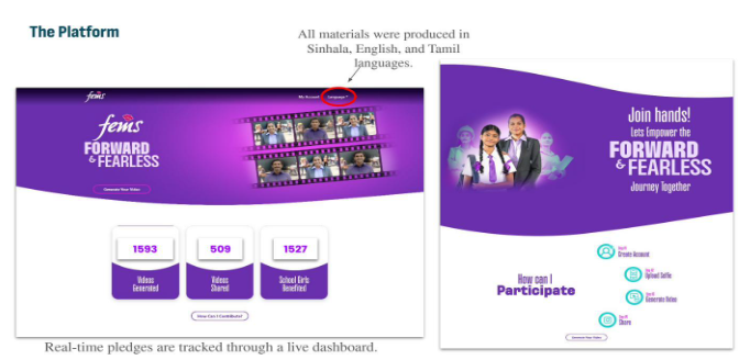 The work did not stop at the screen. Phase Three brought the campaign into physical spaces: Fems conducted inclusive menstrual health education sessions at more than 20 schools across Sri Lanka, involving girls, boys, and male teachers. More than 17,900 students were reached in total.